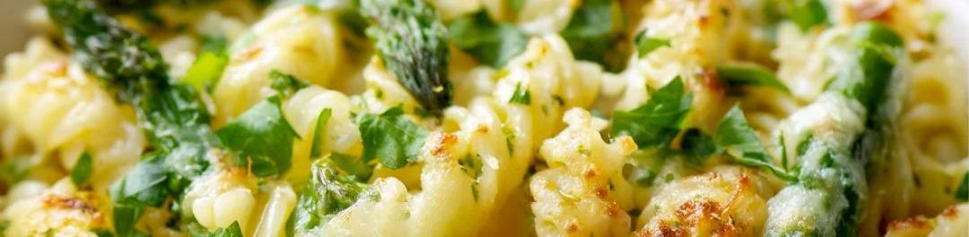 Meanwhile, place the asparagus in a medium casserole dish and sprinkle with 2 tablespoons of water. Cover and microwave just until tender, 3 to 4 minutes. Drain and stir in the cooked rotini. Cover and keep warm.