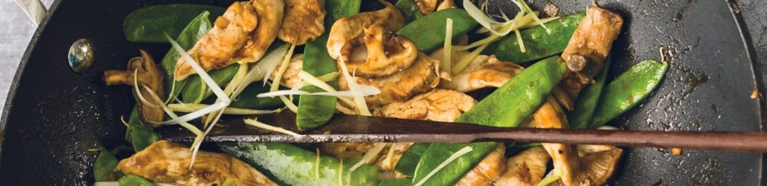 Stir-Fried Chicken with Snow Peas and Mushrooms